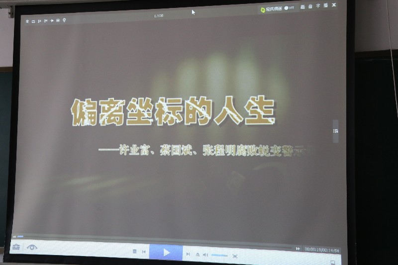 学完学校章程之后,中心组成员和全体党员观看了反腐教育警示片《偏离坐标的人生》,通过观看许业福、蔡国斌、张程明腐败蜕变案例,给广大党员又上了一次生动的教育课。