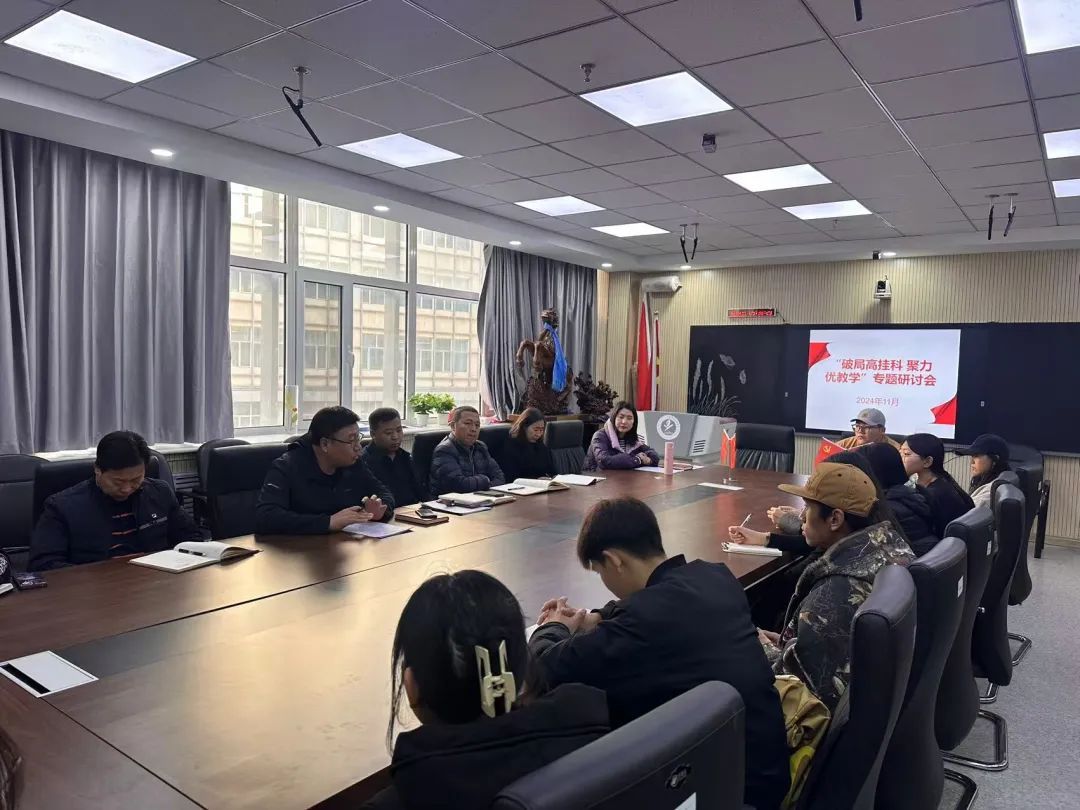 2024年11月22日上午,我院在学院会议室召开“破局高挂科 聚力优教学”专题研讨会。学院副书记、副院长金振华,副院长呼日乐巴根,学生工作办公室副主任白图雅,教科研办负责人白龙以及任课老师包满节,呼和木仁,红梅和学生代表参加本次研讨会。