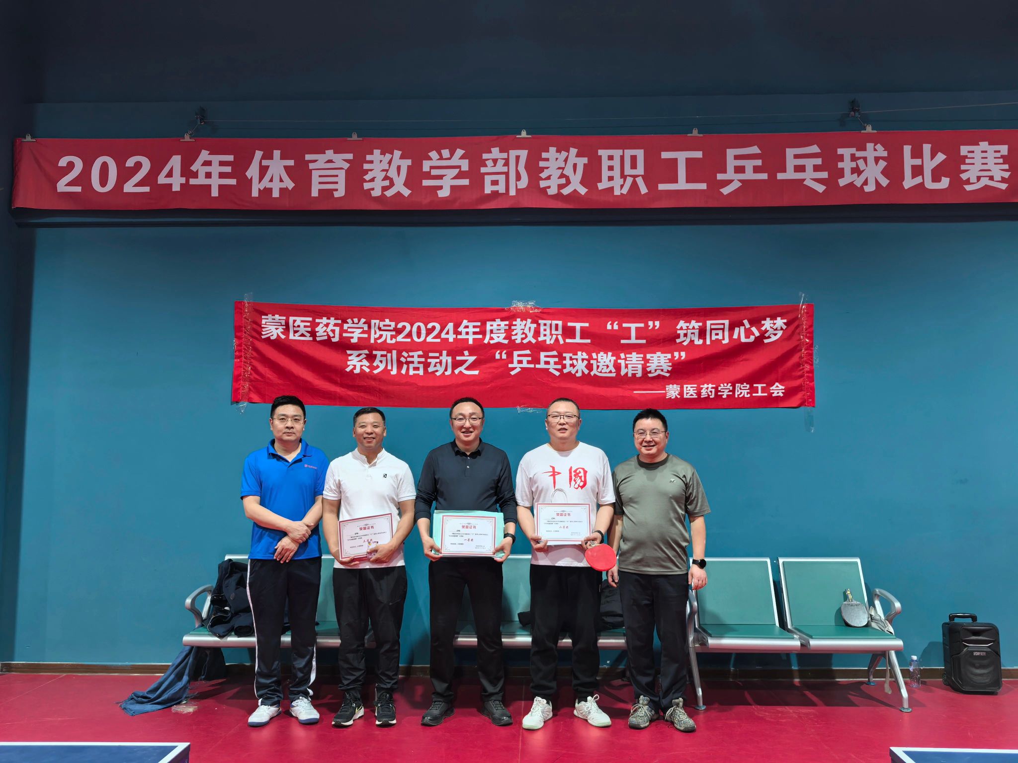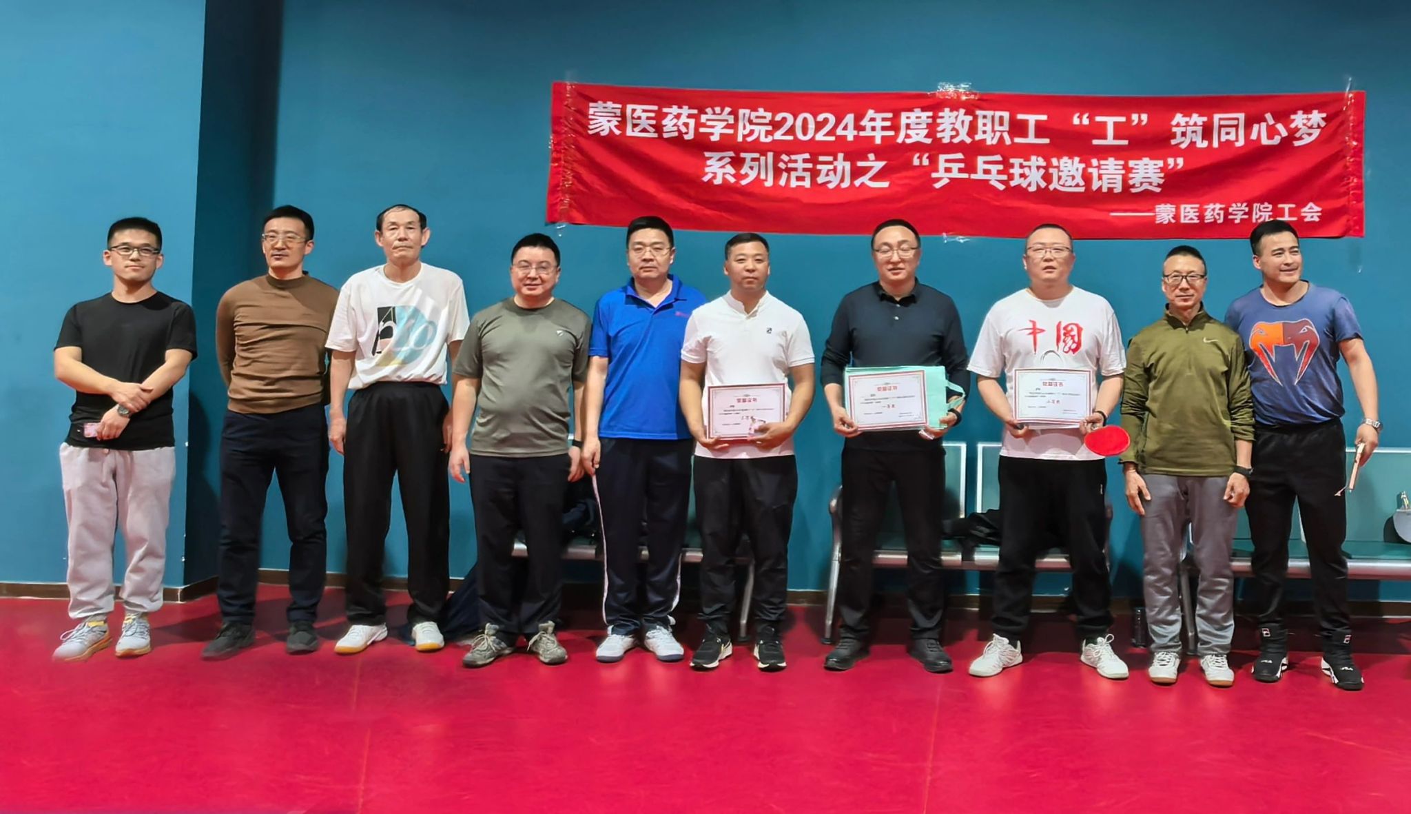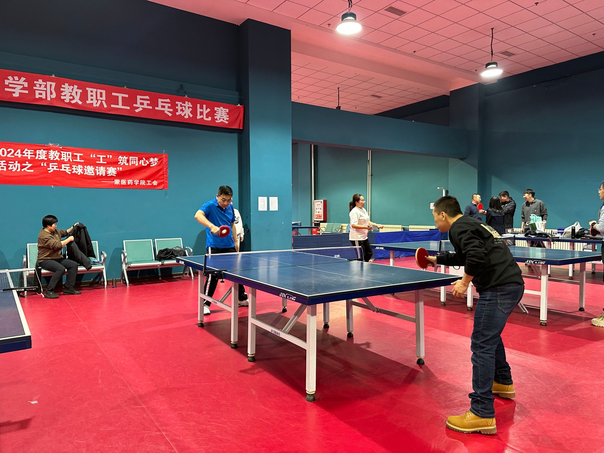 2024年11月20日中午,在学校文体馆2楼,蒙医药学院成功举办了2024年度教职工“工”筑同心梦系列活动中的“乒乓球邀请赛”。此次活动旨在增强教职工之间的交流与合作,促进身心健康,营造和谐的工作氛围。活动由蒙医药学院工会组织,蒙医药学院党委书记张强同志主持开幕式,学校工会副主席陈永胜亲临现场参与并担任颁奖嘉宾,充分体现了学校工会对教职工文体活动的重视和支持。