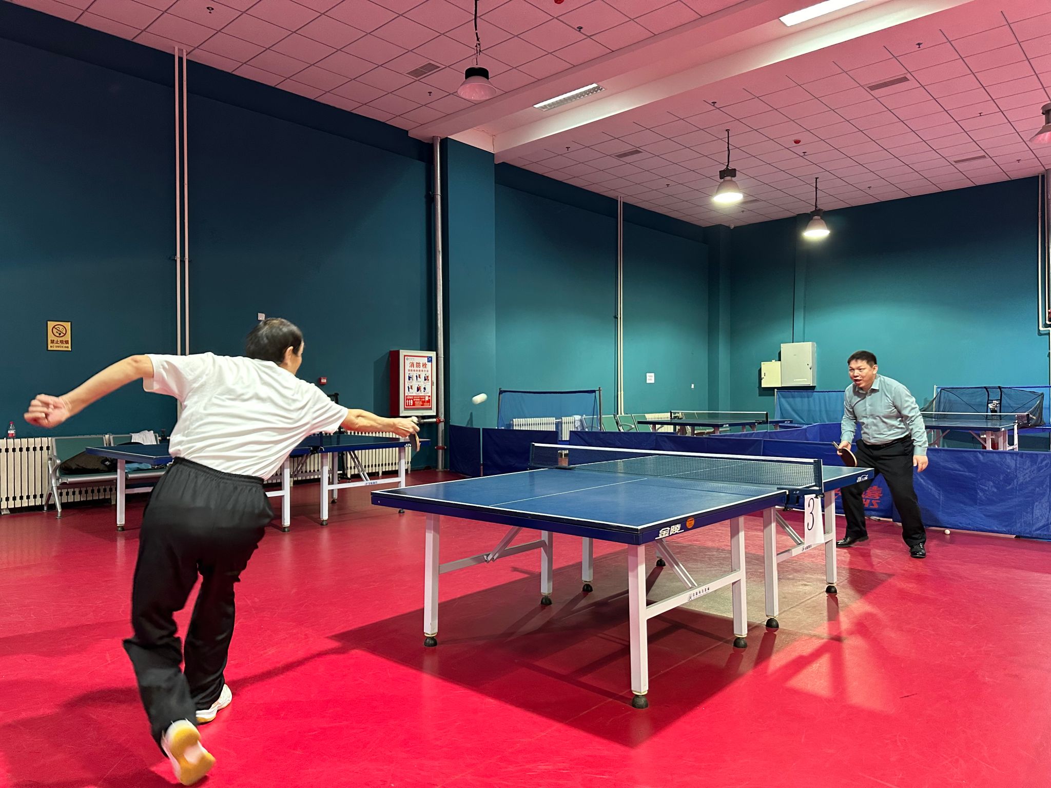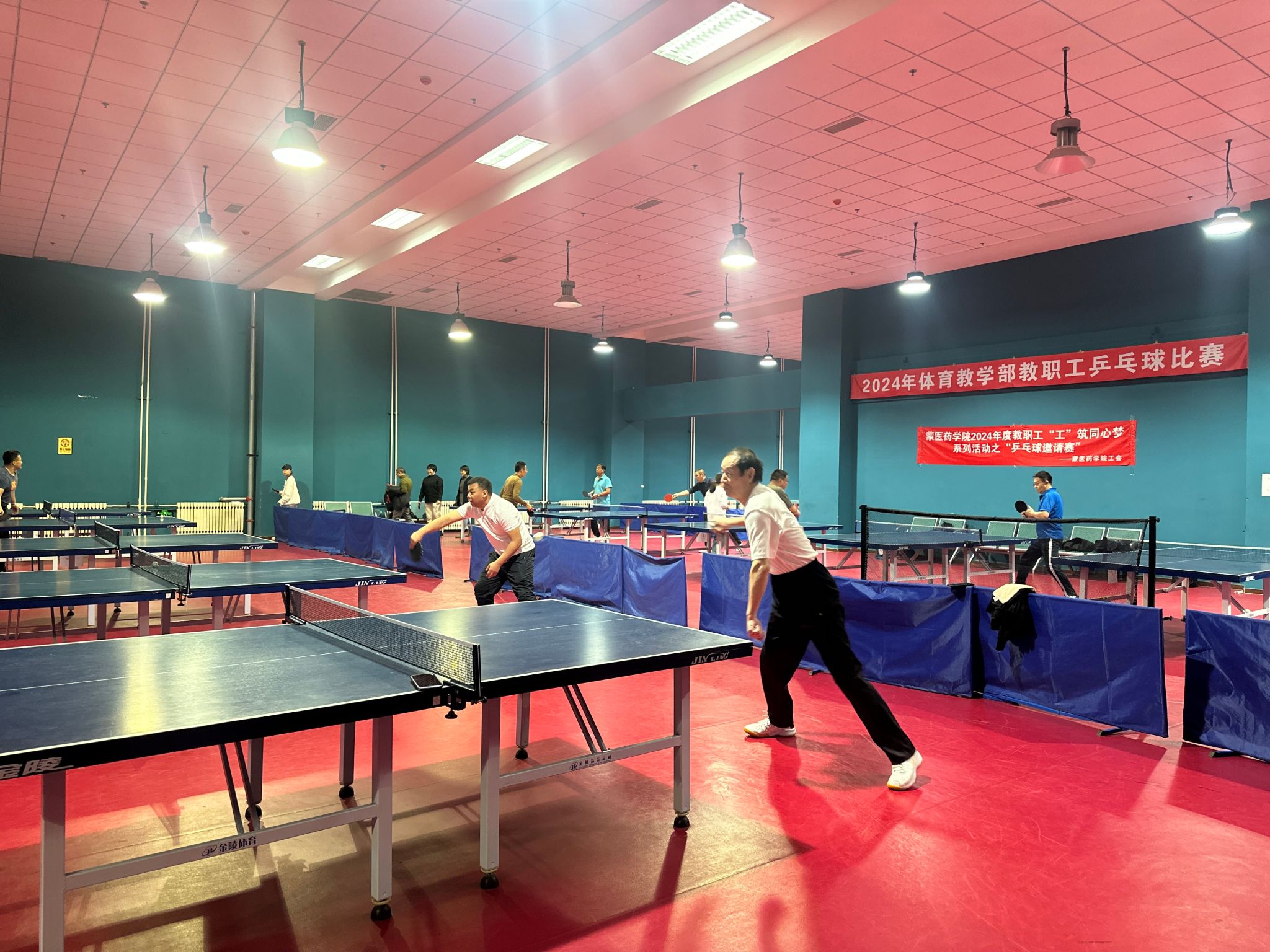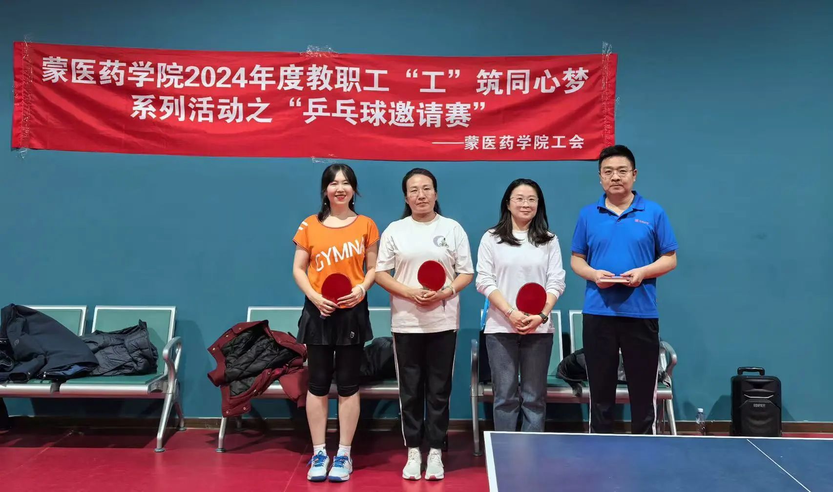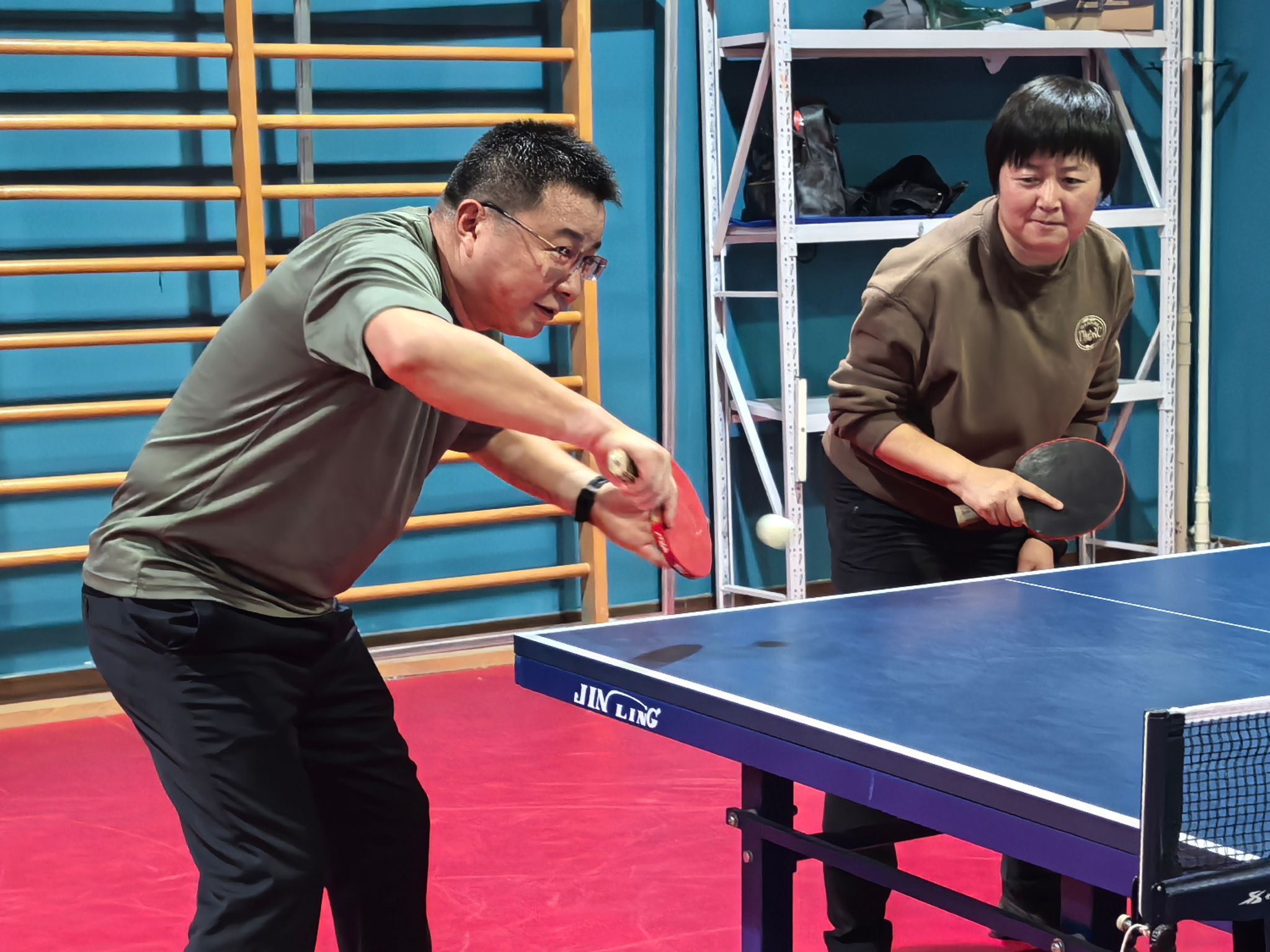 2024年11月20日中午,在学校文体馆2楼,蒙医药学院成功举办了2024年度教职工“工”筑同心梦系列活动中的“乒乓球邀请赛”。此次活动旨在增强教职工之间的交流与合作,促进身心健康,营造和谐的工作氛围。活动由蒙医药学院工会组织,蒙医药学院党委书记张强同志主持开幕式,学校工会副主席陈永胜亲临现场参与并担任颁奖嘉宾,充分体现了学校工会对教职工文体活动的重视和支持。