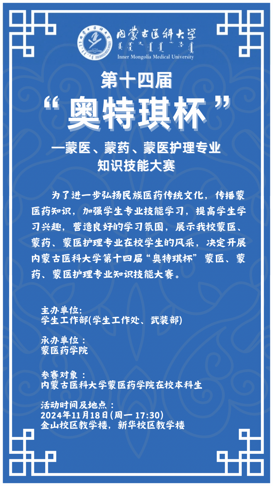 活动通知||第十四届“奥特琪杯”——蒙医、蒙药、蒙医护理专业知识技能大赛