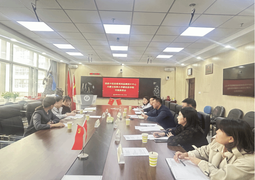 10月14日下午,中国中医科学院中国医史文献研究所民族医学研究室副主任成莉,国家中医药管理局监测统计中心综合统计处干部李文心一行来我院开展调研座谈,内蒙古自治区卫生健康委中(蒙)医药综合处副处长郝海燕陪同调研。
